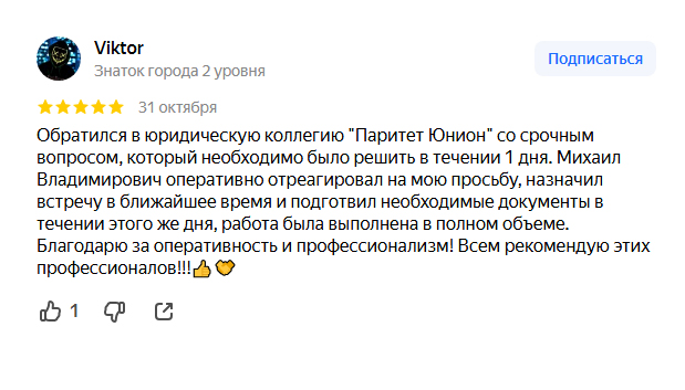 Специалисты коллегии имеют многолетний опыт работы и глубокие знания в различных отраслях права. Клиентам предлагается индивидуальный подход и прозрачные условия сотрудничества. Мы гарантируем конфиденциальность и профессионализм в каждом деле. Коллегия «Паритет Юнион» ориентирована на достижение максимального результата для своих клиентов. Мы ценим доверие и строим долгосрочные отношения, поддерживая клиентов на всех этапах решения юридических задач.