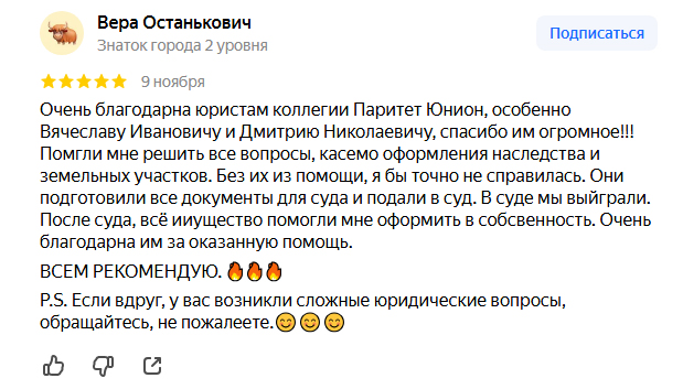 Юридическая коллегия «Паритет Юнион» — это команда опытных и квалифицированных юристов, готовых предоставить полное сопровождение по всем юридическим вопросам. Наша миссия — защищать интересы клиентов и помогать им успешно решать правовые проблемы любой сложности. Мы оказываем широкий спектр услуг: от ведения дел в судах до внесудебного урегулирования споров, оформления недвижимости и помощи в вопросах банкротства физических лиц.