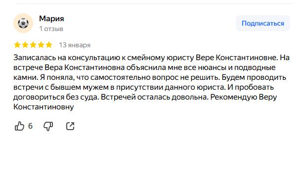 "18 лет я защищаю права людей в самых деликатных спорах — семейных, наследственных, трудовых. Я понимаю, что за каждым делом стоит человеческая судьба, боль и эмоции. Поэтому в 2024 году я стала профессиональным медиатором. Теперь у меня есть два мощных инструмента: либо выиграть ваш спор в суде, либо помочь найти мирное решение, сэкономив ваши время, деньги и душевные силы"